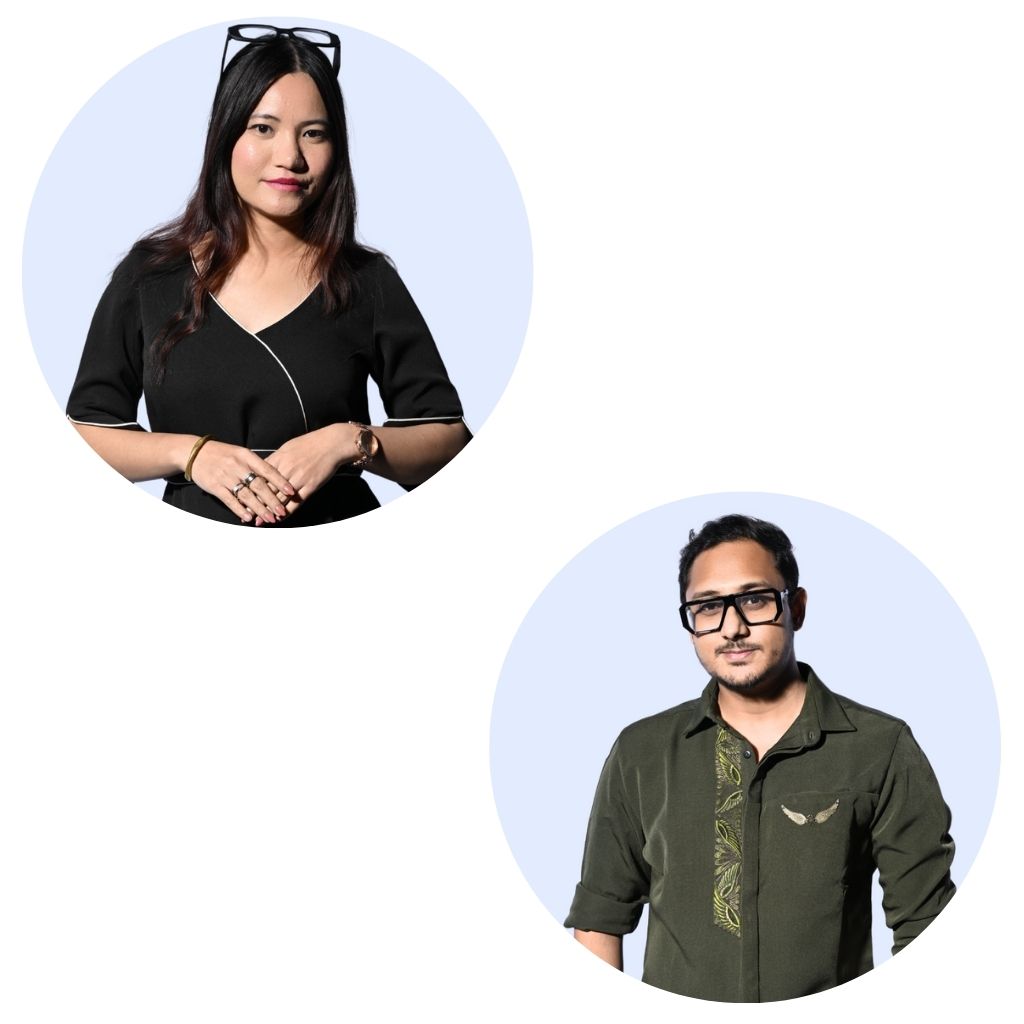 Aritra Das and Sumi Muktan met at the renowned National Institute of Fashion Technology in Hyderabad in 2015 and created a fantastic partnership that combines their different backgrounds and skills seamlessly. Aritra is an expert in surface design and detailed embroideries, while Sumi excels in creative pattern making and sustainable cutting techniques. Aritra hails from the vibrant city of Kolkata, known for its rich literary history and beautiful architecture, which has greatly influenced his artistic journey and added a unique cultural depth to his designs. On the otherhand, Sumi grew up in the gorgeous landscapes of Assam, surrounded by diverse flora and fauna, coupled with her early introduction to dressmaking under her mother's guidance, igniting her passion for design from an early age. Together, their collaborative work blends various cultural influences, creativity, and innovation, resulting in sophisticated designs that set them apart in the industry.